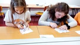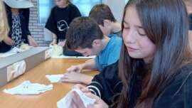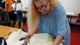На радионици Предузимљива деца ученици су учили вез, како би могли да у форми веза направе беџеве са ликом Вука Караџића. Са њима су радиле наше гошће из Атељеа 55.