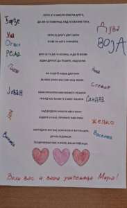 Још једну активност, социоемоционалног учења реализована је у 3. разреду, у одељење учитељице Мирјане Павловић. Недавно су ученици 7. разреда написали писмо трећацима, које су им прочитали Павле и Софија. Поручили су им да се на њих увек могу ослонити и обратити им се за помоћ. Сада су им трећаци одговорили песмом коју је прочитала Василија, а коју су написали заједно са својом учитељицом. Циљ ове активности је изградња везе између млађих и старијих ученика и подстицање узajамног поштовања и сарадње.