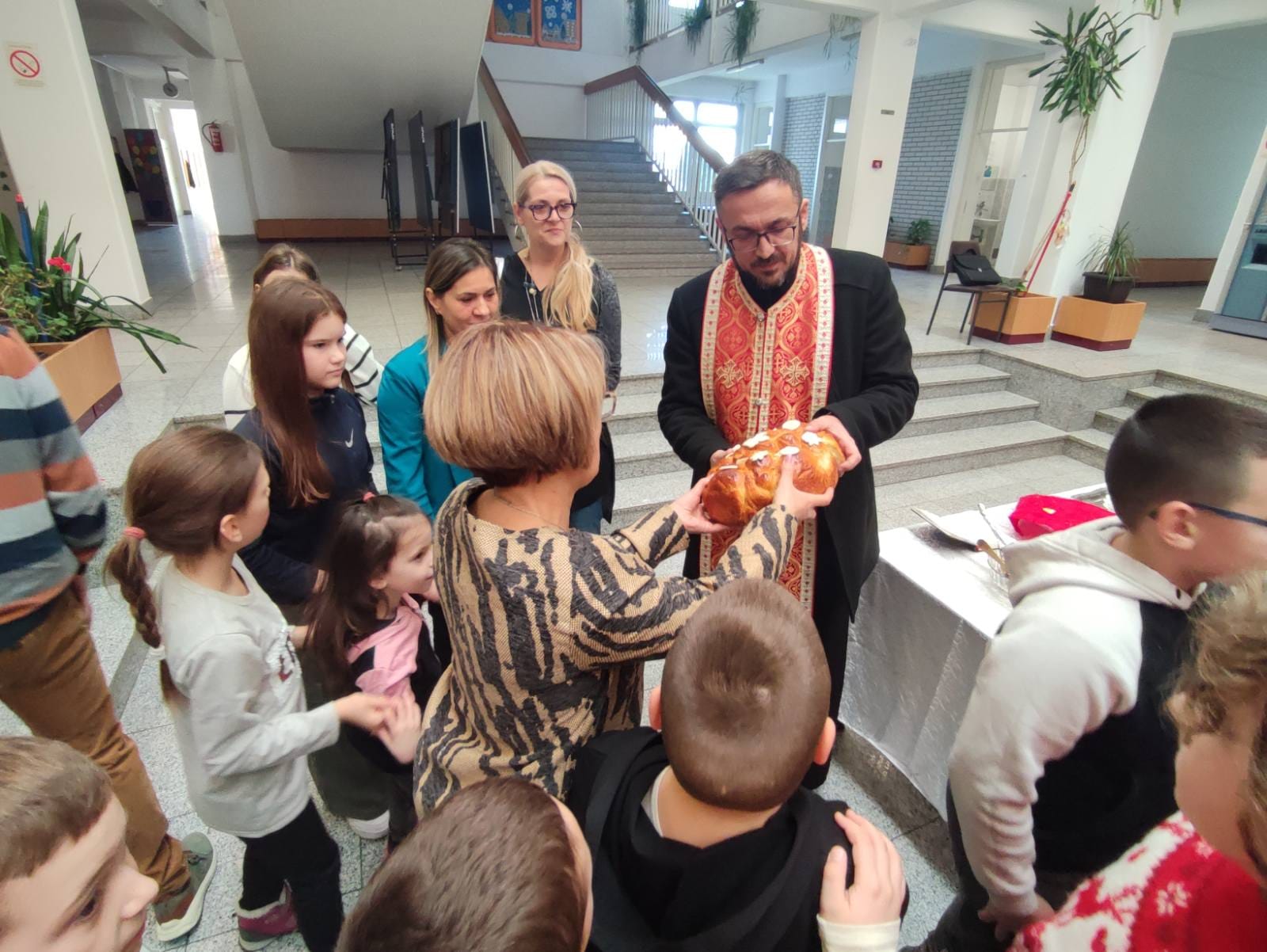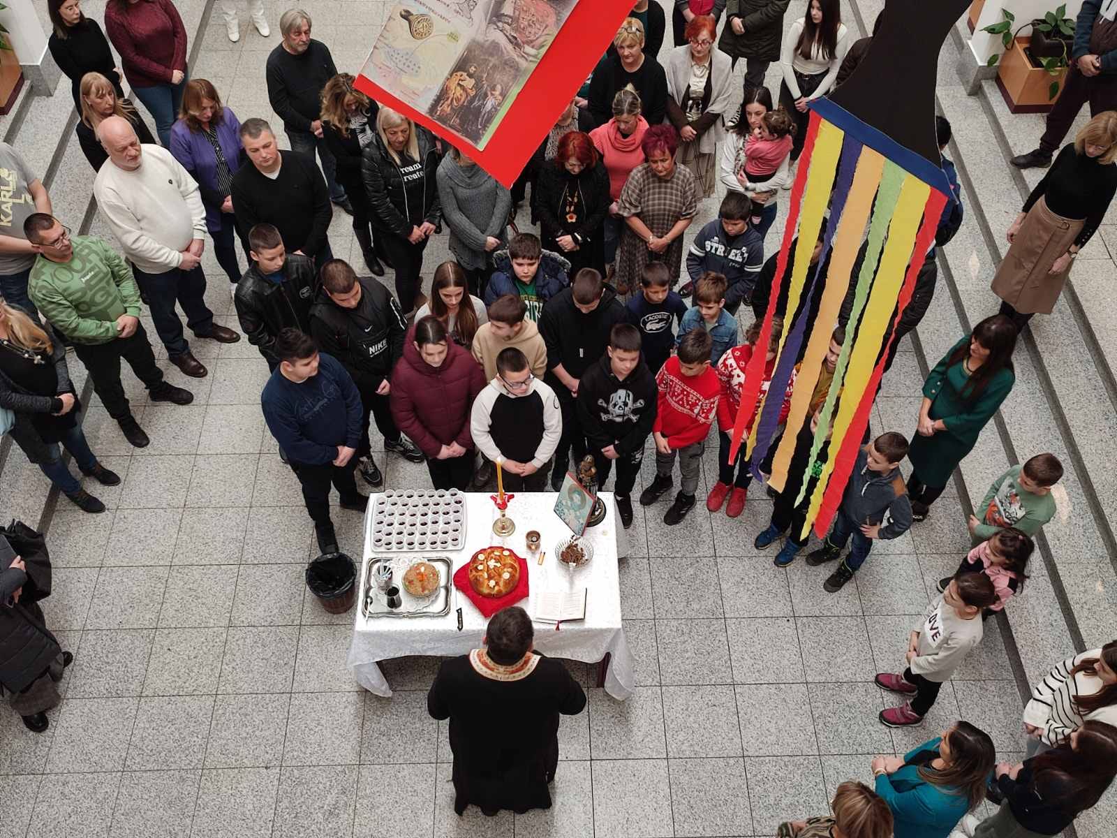 У присуству свештеника, ученика и родитеља уследило је традиционално резање славског колача. Свечар ове године била је наставница енглеског језика, Марија Маринковић.