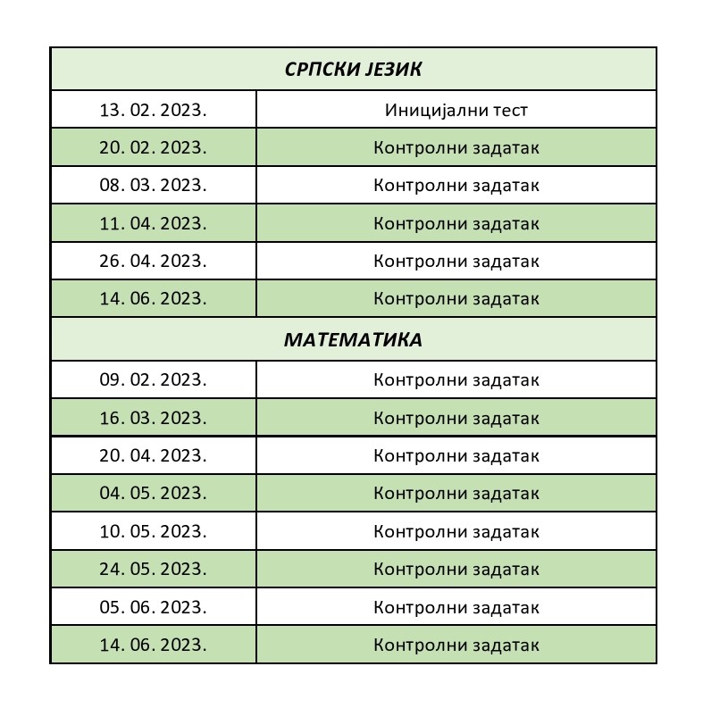 Распоред писмених и контролних вежби и тестова